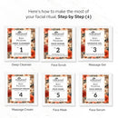 STEP-2)-Take a coin-sized amount of scrub and message it on your face & neck in circular upwards motions for 3 to 5 minutes then gently remove with moist cotton swab .Pet dry before moving on to the next step.
